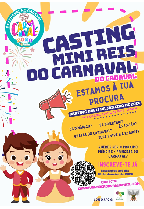 Carnaval no Cadaval 2026AECadaval3 de dez. de 20251 min de leituraDivulgamos a atividade "Casting para os Príncipes do Carnaval" junto da comunidade escolar.Para mais informações, devem aceder ao link: App do Carnaval 2026