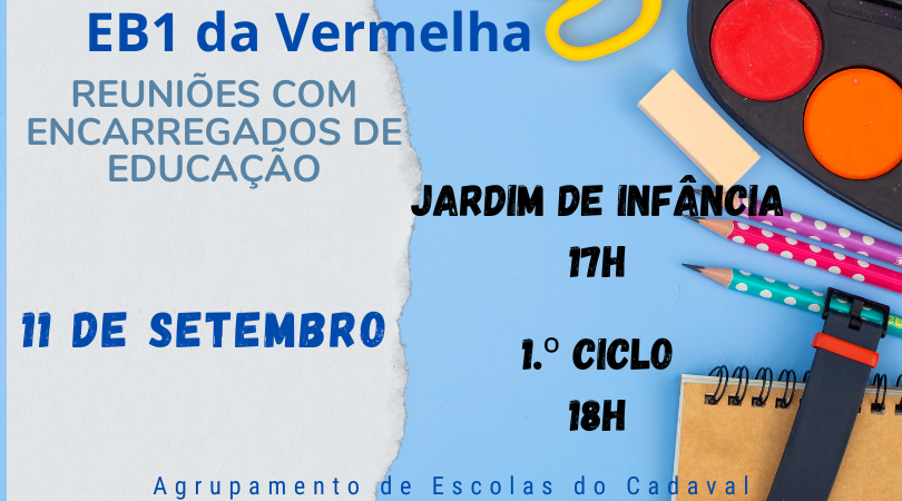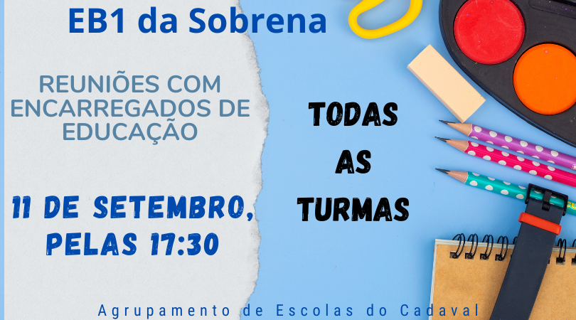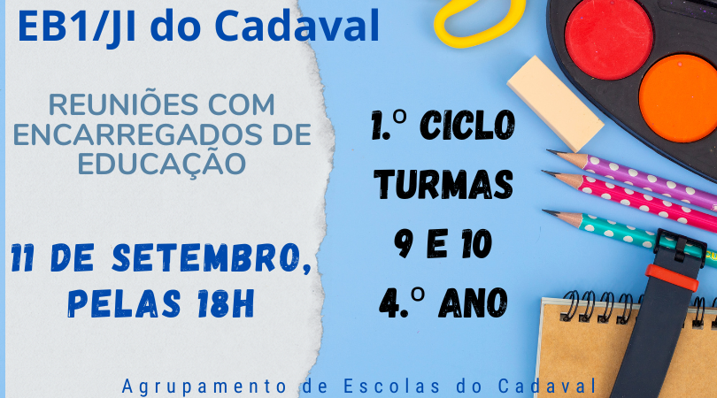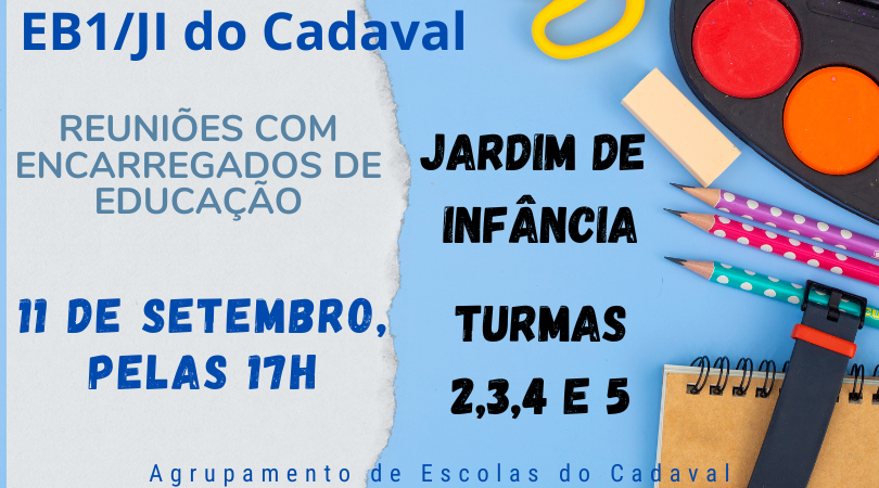 Reuniões com Encarregados de Educação - SETEMBRO 2024AECadaval5 de set. de 20241 min de leituraAtualizado: 16 de jun.As reuniões com Encarregados de Educação, nas diversas escolas do Agrupamento já estão marcadas. Consulte aqui os horários.